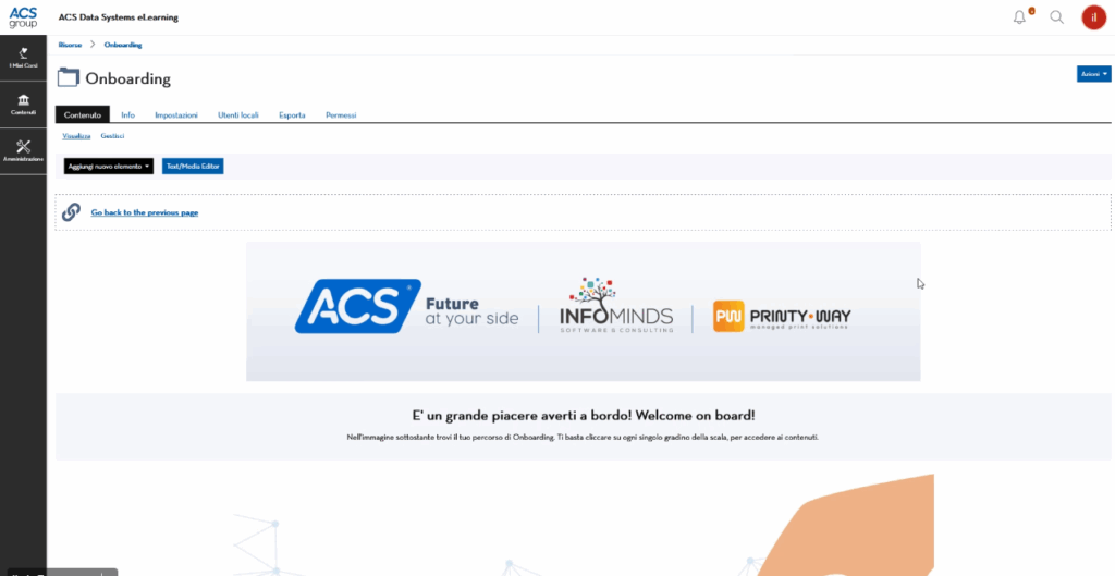 With ACS Group, we've built a project that goes beyond technical support. We've transformed an underutilized platform into an integrated corporate tool, capable of guiding employees and departments through specific, visually refined, and functional training programs.